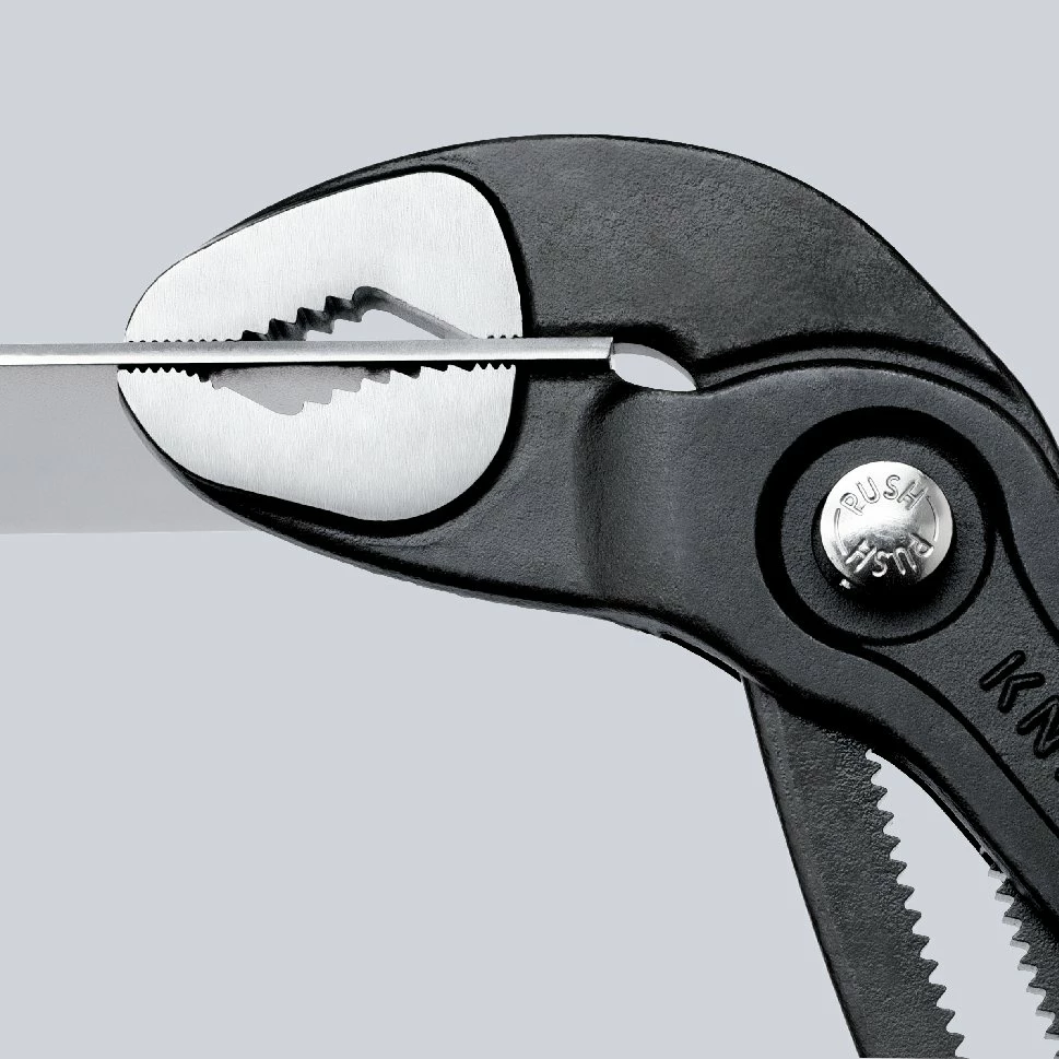 - 87 03 250 KNIPEX Cobra® Push the button for adjustment on the workpiece.