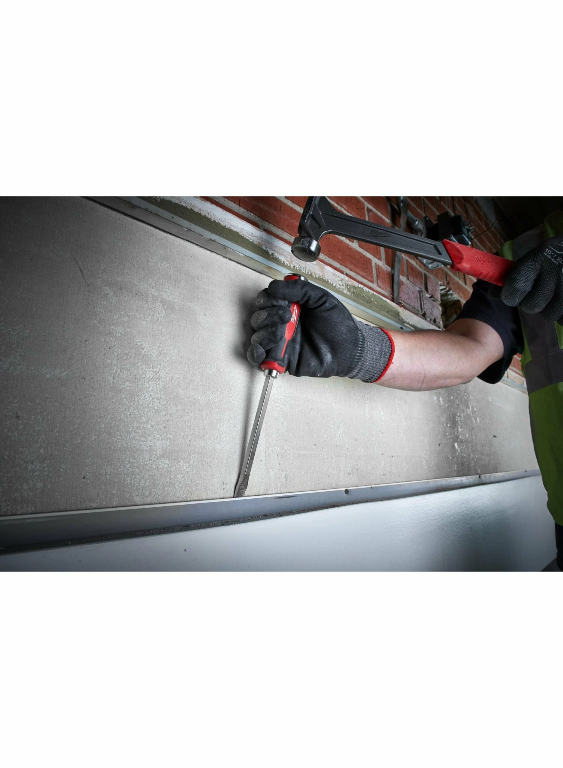 The Milwaukee 4932471871 Demolition Driver features a duct piercing tip which enables the driver to pierce sheet metal. The tool includes multiple striking caps which deliver increased force when chiseling and prying. In addition, the all-metal core is hardened, which provides maximum durability for the shank.