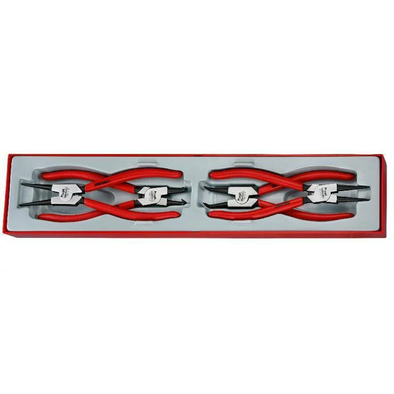 - Teng Tools 4 piece circlip plier set consisting of 2 straight tip and 2 bent tip pliers. For internal and external circlips.